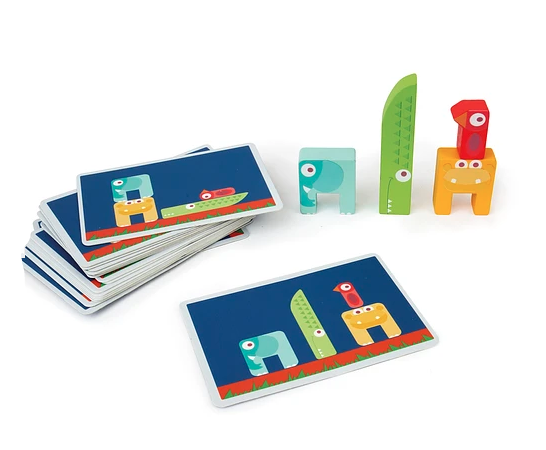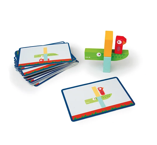 Balancio es un juego de coordinación, motricidad fina y ayuda a la resolución de problemas entre otros. Saca una tarjeta y trata de copiar las acrobacias que hacen los animales apilando y colocando a sus figuras de madera como lo hace la tarjeta. Es un juego para jugar solo, puedes también jugar contra el tiempo y ver si logras el desafío antes que se acabe.