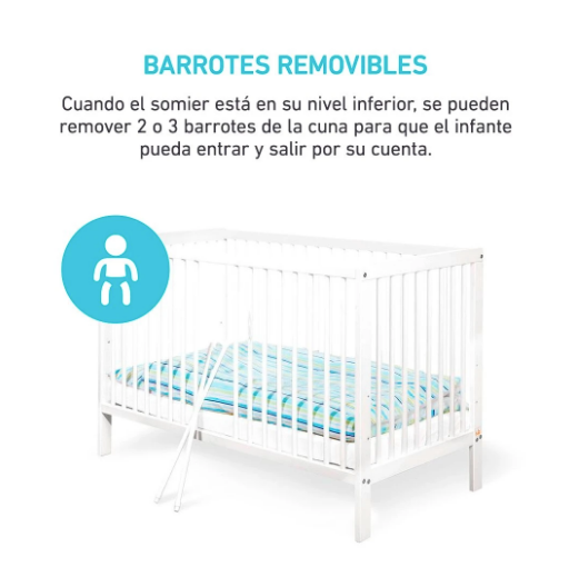 Lacuna de maderaecológica 'Lenny' es el mobiliario perfecto para la habitación del bebé, tiene un tamaño de colchón de 120 x 60 cm y ofrece libertad para su hijo con 2 barrotes deslizables. Es una cuna robusta de madera maciza con barras redondas en los cuatro extremos de la cuna.Se puede regular en 3 alturas, por lo que el tiempo de vida útil es mucho mayor. Hecha de madera maciza de Pino sin tratar.