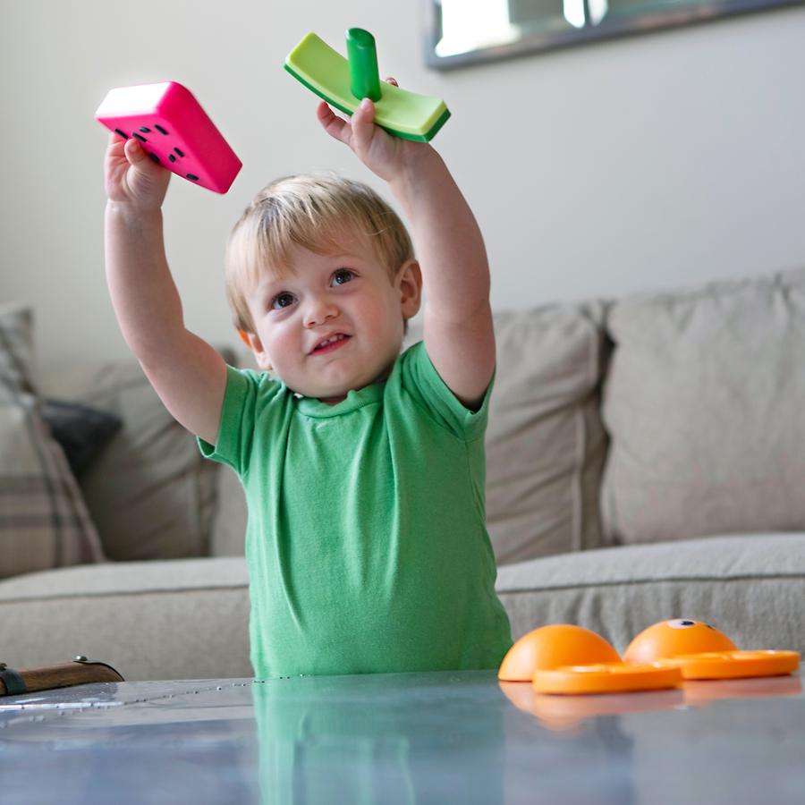 ¡Alimenta los sentidos! Cada una de estas frutas amistosas presenta una experiencia úica para que los pequeñs exploren. Sonajeros, encajes, imanes, son una entretención sin fin. La naranja se separa en cuatro gruesas rodajas que se vuelven a unir con imanes. Las piezas de sandía se apilan sobre una base de clavija que se tambalea mientras las semillas de silicona fascinan los dedos. Luego está la pera: ¡envíela tambaleándose y escuche mientras las campanas del interior cantan! Fomenta las habilidades motoras finas, el aprendizaje sensorial, el aprendizaje táctil, el aprendizaje de causa y efecto y el juego imaginativo. Fabricados en materiales altamente resistente, libre de BPA, son fáciles de limpiar.