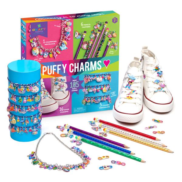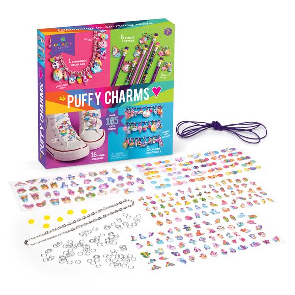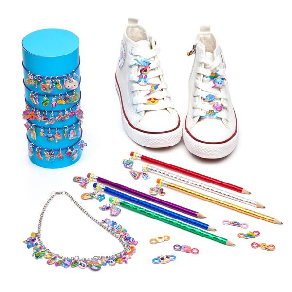 Desde piñas hasta pandas, desde pizza hasta planetas, ¡la cantidad de amuletos en este juego es espectacular! Es fácil y divertido de hacer: simplemente pegue dos pegatinas en relieve juntas para hacer un amuleto y agréguelo a un collar, lápiz, zapato o pulsera o un estilo propio. ¡Incluso hay 21 amuletos rellenos de glitter para darle más brillo! Con este kit puedes armar 1 collar, 6 adornos para lápices, 16 dijes para zapatos y 5 pulseras con dijes. Incluye suficientes pegatinas para 105 amuletos en relieve. Fácil de hacer: solo pegue dos adhesivos en relieve juntos. El kit incluye 210 pegatinas en relieve, 110 anillos de metal, 1,8 m de cordón elástico, 6 anillos de circulo, 1 collar de metal. Edad Recomendada +7 Años