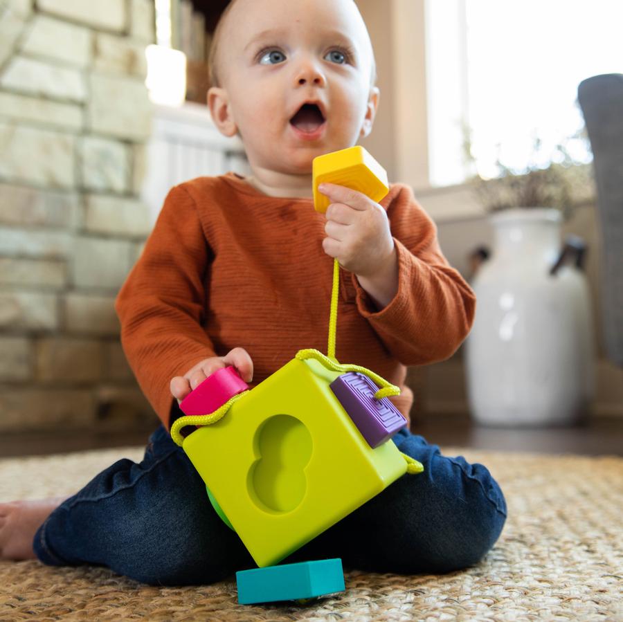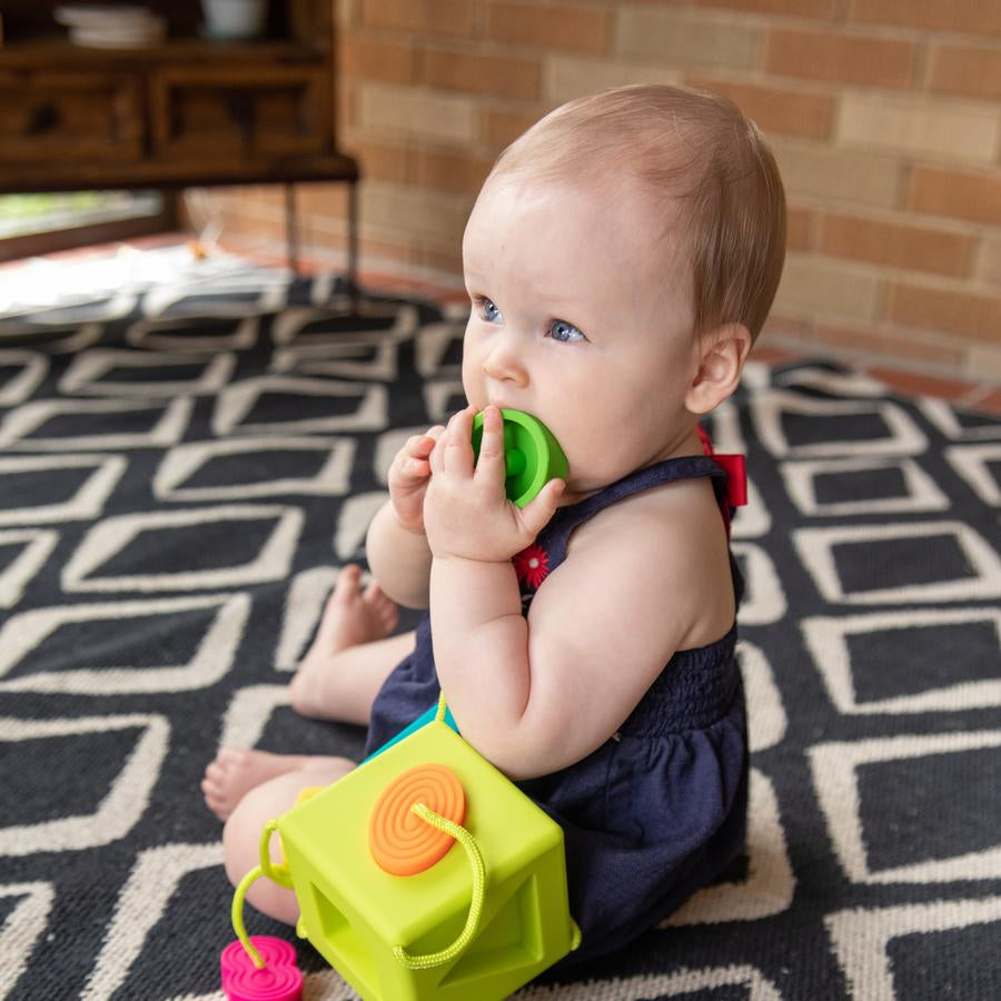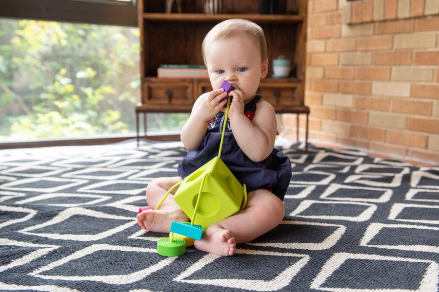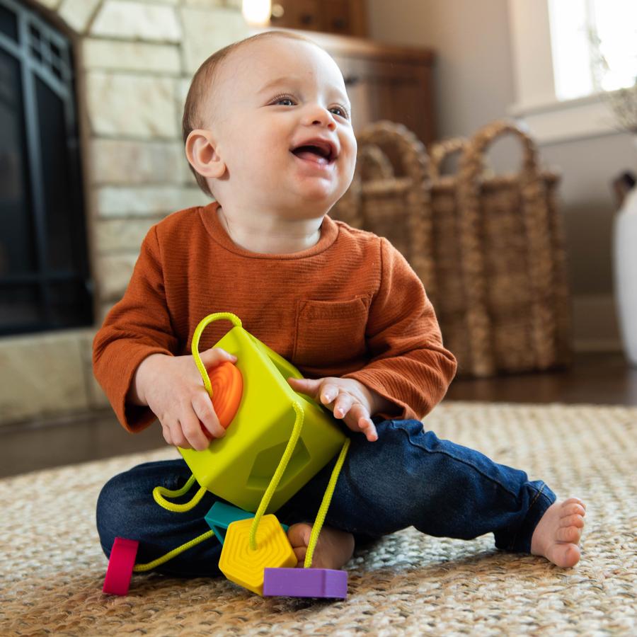 Al fin un cubo de clasificación con piezas que no se perderán! Ideal para descubrir formas, aprender colores y mejorar las habilidades motoras mientras los pequeños trabajan para encontrar el lugar adecuado para las formas. Las cuerdas son lo suficientemente cortas como para ser excepcionalmente segura y lo suficientemente largas como para que las pequeñas manos puedan agarrar y explorar libremente. Las formas incluyen triángulo, cuadrado, oval, círculo, pentágono, círculo doble. Hecho de 100% de silicona de grado alimentario, sin BPA, no tóxico.