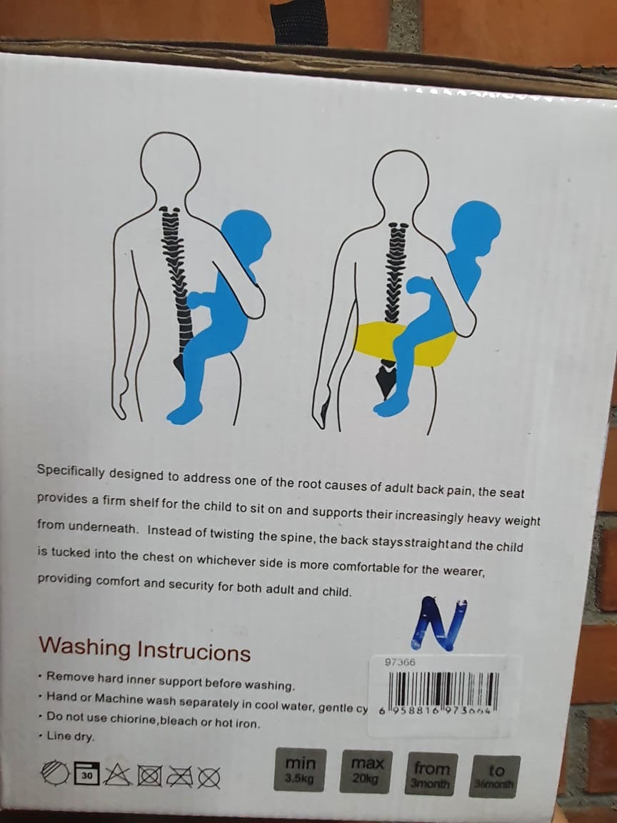 Porta bebés recomendado hasta los 36 meses o 20 kg del niño.