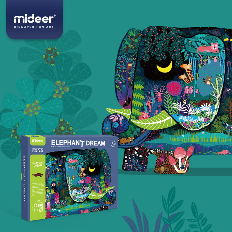 El puzzle con forma de elefante de 280pcs tiene un diseño muy especial del misterio de la jungla conformado por animales, pájaros, árboles y muchas formas de vida, es un puzzle lleno de detalles. Es un puzzle no solo para que los niños se diviertan armándolo, sino que también sirve para reconocer animales (mas de 30 especies) , plantas (mas de 30 especies) y el medio ambiente. Incluye hoja con dibujo de referencia.