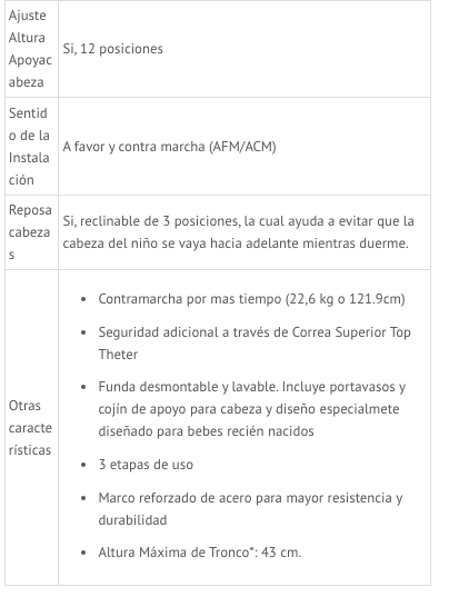 - La reclinación en el asiento permite que su hijo viaje de manera segura mirando hacia atrás durante más tiempo