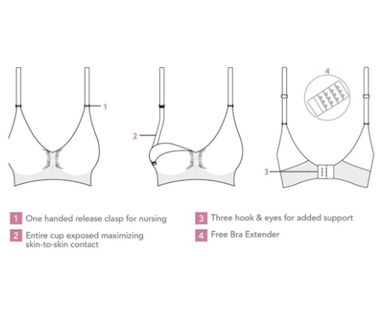 Sostén sujetador sin costuras suave y cómodo que se adapta a los cambios que experimentan los senos de la mujer lactante. Los cierres de lactancia, fáciles de usar con una sola mano, exponen el pecho entero para maximizar el contacto piel con piel con el bebé durante la lactancia.